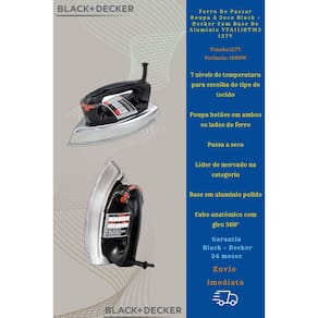 1 Ferro De Passar Roupa A Seco Black + Decker Com Base De Alumínio VFA1110XM6 220V