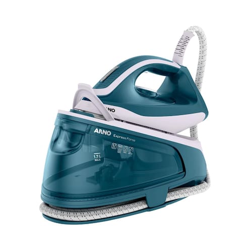Modelo: SSEF Tipo: Ferro com estação de vapor Potência: 1700W Pressão do vapor: 5,7 bar Vapor contínuo: 90 g/min Vapor extra: Até 280 g/min Base: Cerâmica Xpress Glide Reservatório de água: 1,7 L (removível) Modo ECO: Sim Desligamento automático: Sim Cor: Azul Material: Plástico e metalO Ferro com Estação de Vapor Express Force da da Arno redefine a experiência de cuidar das suas roupas, entregando até 3x mais vapor do que um ferro tradicional. Com uma pressão poderosa de 5,7 bars e um jato de vapor extra de até 280g/min, ele penetra profundamente nas fibras, eliminando os vincos mais difíceis em segundos e reduzindo o tempo de passar em até 30%.