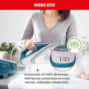 Pensando na sua segurança e economia, o aparelho conta com desligamento automático e o Modo ECO, que reduz o consumo de energia em até 20%. Mais do que passar, ele cuida da saúde da sua família, higienizando os tecidos e eliminando até 99,99% de germes, vírus e bactérias sem o uso de produtos químicos.