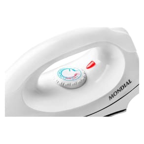 Aquele ferro prático que cabe em qualquer lugar... O Ferro a Seco com Base de Alumínio Polido FSN-55-W da Mondial é um ferro de passar roupas que aquece rápido, desliza com segurança, tem 6 temperaturas e 1000W de potência. Com Design Anatômico, o FSN-55W tem estilo moderno e seu deslizamento fácil faz com que passar roupas não seja um sufoco ou musculação. Sua Base de Alumínio Polido permite a distribuição uniforme e rápida do calor, portanto serve muito bem a quem não precisa de vapor para desamassar os vincos mais difíceis e é perfeito para aqueles que gostam de dar uma alisada rápida nas peças antes de vestir e sair.