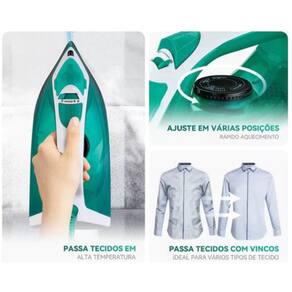 Funcionalidade e Propósito Este ferro é perfeito para quem valoriza qualidade, durabilidade e eficiência no cuidado com as roupas. Ele é ideal para: Uso Doméstico: Manter roupas, toalhas e lençóis sempre impecáveis no dia a dia Profissionais de Moda e Costura: Obter resultados precisos em tecidos delicados e peças de alta qualidade. Hotéis e Lavanderias: Atender à demanda de passar roupas em larga escala com eficiência. Viagens: Modelo compacto que cabe facilmente na mala, garantindo que suas roupas fiquem sempre arrumadas. Cor: Verde com Branco Marca: Não Informado