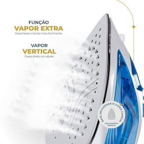 A função vapor vertical possibilita desamassar roupas diretamente no cabide, ideal para peças delicadas ou de última hora. Já a função vapor extra elimina amassados e vincos difíceis de forma rápida, otimizando seu tempo.