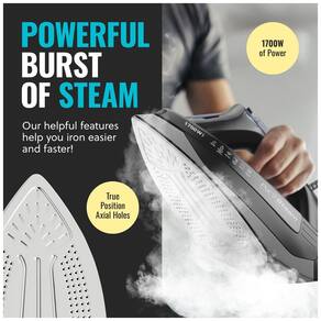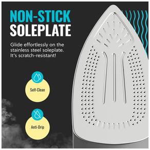 Base de aço inoxidável ultra press Base de acabamento cromado espesso para durabilidade, resistência a arranhões e deslizamento incomparável a distribuição de vapor especialmente projetada é perfeita para costureiras, quilters e artesãos. Fácil controle do termostato e orifícios de vapor axiais Com base no tipo de tecido, você pode selecionar facilmente a saída de vapor ideal e manter a temperatura como desejar. A colocação, alinhamento e tamanho de nossos orifícios de vapor fornecem a quantidade máxima de vapor necessária, mantendo uma distribuição uniforme de calor por toda a base. Reduza o tempo de engomar pela metade com nossa tecnologia de aquecimento uniforme rápido e 1700 watts de potência, você pode deslizar facilmente por várias roupas e suavizar áreas de difícil acesso. Nosso ferro a vapor PurSteam fornece temperaturas ideais para algodão, lã, seda, linho, poliéster, nylon e muito mais. Recursos de segurança Mantendo você em todos os momentos com nosso sistema de desligamento automático de 3 vias, evitando acidentes e roupas queimadas. Com o nosso recurso Anti Drip, você não precisa se preocupar com o gotejamento de água da base em baixas temperaturas ou quando o ferro não está em uso. ANTI CALC previne o acúmulo de minerais