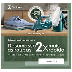 O Ferro de Passar Roupa a Vapor e a Seco Electrolux Experience Care (ESI80) oferece um design mais robusto que carrega toda a qualidade e alta performance tecnológica, trazendo mais facilidade e rapidez no seu dia a dia.