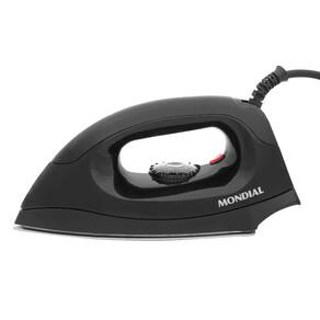 Ferro de Passar Roupa a Seco FSN-55-B Mondial Preto 110v O ferro de passar roupa FSN-55-B a seco da Mondial vai facilitar e muito seu dia a dia na hora de passar roupas. Possui base de alumínio polido que garante a distribuição de calor uniforme. Conta com salva botões em toda a sua base, perfeita para desamassar até as zonas de mais difícil acesso das suas roupas como entre os botões, no colarinho e nos punhos. Disponível na cor preto ela possui 6 diferentes níveis de 6 diferentes níveis de temperatura para você selecionar a ideal para cada tipo de tecido. O que vai te ajudar a alcançar excelentes com suas roupas de forma prática e com muito menos esforço. Leve agora esse ferro de passar roupas e tenha o melhor da Mondial na sua casa CARACTERÍSTICAS: - Salva-botões em toda a base - Design anatômico - Base de alumínio polido que garante a distribuição de calor uniforme ESPECIFICAÇÕES: - Voltagem: 110v - Consumo: 1,0 KW/h - Potência: 1000W - Tipo: A seco - Temperaturas: 6 níveis - Base antiderrapante: Não - Material: PP e Metal - Medidas AxLxP : 12x10,5x25 cm - Peso: 0,75 Kg - Garantia: 12 meses ITENS INCLUSOS: - 01 Ferro a seco FSN-55-B - Manual de Instruções