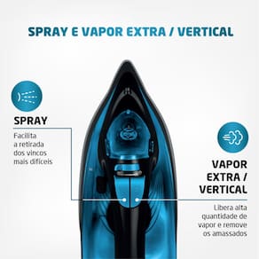 - Vapor Extra, Vapor Vertical e Spray: Permite remover os amassados diretamente no cabide