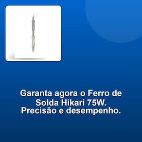 Você pode confiar no Ferro de Solda 21K016 HIKARI para realizar suas tarefas com precisão e facilidade. Nossa paixão pela excelência se reflete em cada detalhe deste produto, desde a seleção dos materiais até a atenção dedicada na sua entrega rápida e eficiente. Experimente a qualidade e o desempenho que só a HIKARI pode oferecer! A satisfação de nossos clientes é o que nos impulsiona, e por isso, cuidadosamente selecionamos o Ferro de Solda 21K016 75W 110V HIKARI para oferecer a você uma ferramenta de alta performance e confiabilidade. Com sua potência de 75W e tensão de 110V, este ferro de solda é ideal para uma variedade de aplicações, desde reparos eletrônicos básicos até projetos mais complexos.