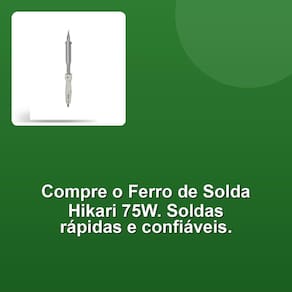 Ferro De Solda Hikari 75w 110v A satisfação de nossos clientes é o que nos impulsiona, e por isso, cuidadosamente selecionamos o Ferro de Solda 21K016 75W 110V HIKARI para oferecer a você uma ferramenta de alta performance e confiabilidade. Com sua potência de 75W e tensão de 110V, este ferro de solda é ideal para uma variedade de aplicações, desde reparos eletrônicos básicos até projetos mais complexos. Sua resistente ponta de ferro com núcleo de cobre, cobertura de ferro e revestimento de estanho garante um aquecimento rápido e uniforme, proporcionando soldas precisas e confiáveis. A estrutura em cerâmica contribui para uma resistência excepcional à temperatura, assegurando durabilidade para o uso contínuo.