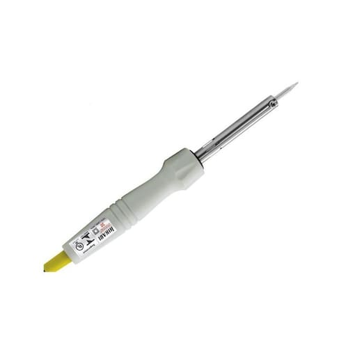 PBT Antichama: Esquenta menos a empunhadura. PBT Politereftalato de butileno mesmo material utilizado em: tomadas, disjuntores e conectores elétricos. Dupla Isolação: Protege contra choque. Tensão: 220V Temperatura máxima: 410 C Potência de consumo: 25W Comprimento: 210mm Peso Total: 140g Conjunto de resistência e tubo metálico substituível Resistência de mica Ponta de longa durabilidade tratada com ferro e alumínio Instruções de Uso: Estanhe a extremidade da ponta ao ligá-lo pela primeira vez. Estanhe a ponta também todas as vezes que desligar o ferro para evitar oxidação. Este procedimento aumenta consideravelmente a vida útil da ponta. Os ferros de soldar devem ser colocados em suporte adequado quando não estiverem sendo . Como Soldar: Primeiro lixe toda sujeira, ferrugem ou tinta da área a ser soldada. Depois: Aqueça o local com ferro de soldar. Aplique a solda na parte a ser soldada. Espere a solda esfriar antes de movimentar as partes soldadas. Marca: Não Informado Ean: 7899810400512