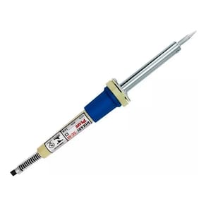 O ferro de soldar é uma ferramenta indispensável no mundo da eletrônica, é extremamente útil para montagem de placas, pequenos reparos onde é necessária a substituição de componentes, emendas em cabos e terminais, entre outras utilidades. Este ferro de solda possui conjunto de resistência de mica e tubo metálico substituível, ponta de longa duração tratada com ferro e alumínio, baixo consumo de energia, aquecimento rápido e potência de consumo de 34W . É um produto desenvolvido seguindo rígidos padrões de qualidade para oferecer maior conforto a você que trabalha com reparos eletrônicos.