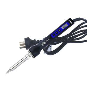 - 9 Memórias de temperatura configuráveis - Calibração de Temperatura - Função Sleep: entra em modo sleep descanso automaticamente após 10 minutos e desliga por completo após 20 minutos sem uso; - Display LCD; - Construído no sistema PID, ajuste de temperatura por botão, fácil operação; - Cabo ergonômico; - Status de controle de temperatura através do LED azul; - Resistência e sensor de temperatura são feitos de material tipo PTC, que é Extremamente rápido no aumento de temperatura e preciso no controle de Temperatura. - Função Sleep e desligamento automático é ajustável, podendo ser desativado. - Estação, ferro e ponta aterrados;