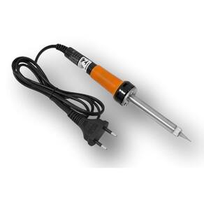 Ferro de Solda WesternPro com suporte. Indicado para soldagem de componentes eletrônicos e pequenos reparos. Potência 40 W, frequência 60 Hz. Tensão 127. Temperatura máxima 450 graus C. Manopla em material isolante. Comprimento 21 cm, diâmetro 3,5 cm. Peso 130 g. Cabo de alimentação com 93 cm de comprimento. Tomada de 2 pinos redondos. Certificado pelo INMETRO. Ean: 7897186074269