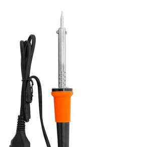 - Dimensoes da Peca: 1 Ferro de Solda:3 x 3 x 20cm (CxLxA) 1 Suporte: 8 x 5cm x 1mm (CxLxA) Comprimento do fio: 98,5cm - Dimensoes da Embalagem: 7,5 x 3 x 26,5cm (CxLxA) - Tipo de Embalagem: Blister - Quantidade Inner: 50 Pecas - Dimensoes Inner: 34,5 x 28 x 30,6cm (CxLxA) - Quantidade Master: 100 Pecas - Dimensoes Master: 57 x 37 x 32cm (CxLxA) - Material: Baquelite, Silicone, Cobre, Aco Pontas: 85% Cobre e 15% Niquel Cromo - Cor: Cabo Laranja com preto - Marca: Western - Contem: 1 ferro de solda e 1 suporte - Especificacoes: Potencia: 40 W. Tensao: 220 V. Frequencia: 60 Hz. Temperatura maxima: 450C. - Caracteristicas: Ferro de solda Western PRO e indicado para soldagem de componentes eletronicos e de outros pequenos reparos. Com rapido aquecimento e manutencao da temperatura, proporciona maior produtividade na utilizacao. Ean: 7897186074276
