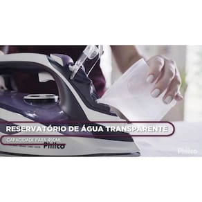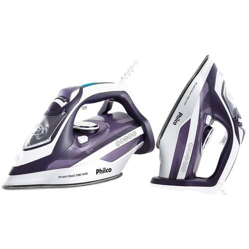 Itens Inclusos 01 Ferro a Vapor Philco PFE Nano Ceramic Turbo Vapor com Spray Branco/Roxo ; Manual de instruções