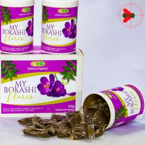 Fert orgânico composto My Bokashi flores 125g Descrição do produto: O Bio Bokashi é um adubo orgânico com certificado Ecocert para agricultura orgânica utilizado para melhorar as condições físicas, químicas e biológicas do solo, proporcionando às plantas as condições ideais para o pleno desenvolvimento. Favorece o ambiente para que as raízes e microrganismos se beneficiem mutuamente. As raízes, além de absorver nutrientes do solo, secretam substâncias nutritivas, sendo que esta secreção ocorre na rizosfera, onde os microrganismos atuam, estes por sua vez, absorvem substâncias de difícil assimilação e as transformam em substâncias assimiláveis pelas plantas, proporcionando uma nutrição equilibrada e fortalecendo a planta contra o ataque de pragas e doenças. Além de ser um excelente adubo orgânico, que fornece macro e micro nutrientes de forma natural, equilibrada e na dosagem certa. A ação mais importante do Bokashi é depositar ao solo microorganismos benéficos como fungos, bactérias, actinomicetos, micorrizas e fixadores de Nitrogênio, atores ativos do processo da nutrição vegetal equilibrada e da construção da sanidade vegetal. O Bokashi é um produto da agricultura natural japonesa saudável para o consumidor e não agressivo ao meio ambiente, obtido a partir de uma mistura vegetal fermentada com microorganismos benéficos. Os principais microorganismos benéficos presentes no adubo orgânico Bokashi são as leveduras, os actinomicetos e as bactérias. Estes microorganismos presentes no Bokashi controlam fungos e bactérias patogênicas e também conferem às plantas maior resistência aos mesmos. Por outro lado, eles também sintetizam substâncias úteis para as plantas como aminoácidos, substâncias bioativas e açúcares, que impulsionam o crescimento da planta. Por último, os microorganismos benéficos presentes no Bokashi melhoram a decomposição da matéria orgânica. O Bokashi promove o equilíbrio biológico do solo, que, por sua vez irá melhorar suas condições físicas químicas e sanitárias. Matéria prima: Farinha de peixe, melaço, farinha de osso, torta vegetal, carvão vegetal, palha de arroz. Modo de aplicação: Via solo Detalhes do produto: - Quantidade: Fert orgânico composto My Bokashi flores 125g - Peso unitário: 125 g - Marca: Ophicina Orgânica