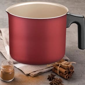 O fervedor Tramontina Turim em alumínio com revestimento interno e externo em antiaderente Starflon Max vermelho 14 centímetros de diâmetro 1,7 litros é a escolha certa para aquecer água para seu chá ou café.