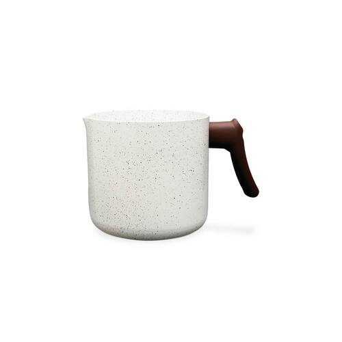 Compatível com todos os tipos de fogões, incluindo cooktop de indução, o fervedor possui acabamento externo siliconado na cor Vanilla, com efeito marmorizado, que adiciona elegância e neutralidade à cozinha. O cabo em baquelite, na cor marrom, conta com toque macio e tecnologia antitérmica, garantindo mais conforto e segurança no manuseio.