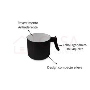 Fervedor Hercules Antiaderente Ceramica Soft Touch Preto 14x11cm Descrição: O Fervedor Hércules combina praticidade, rapidez e design moderno para a sua cozinha. Ideal para preparar bebidas quentes favoritas com facilidade e eficiência. Com acabamento soft touch e formato compacto, ele traz charme e funcionalidade, sendo perfeito para o dia a dia ou ocasiões especiais. Produzido com materiais resistentes como alumínio e baquelite, conta com revestimento antiaderente cerâmico que facilita o preparo e a limpeza. Pode ser em diferentes tipos de fogão, garantindo versatilidade para sua cozinha. Características: -diâmetro de 12 cm -design compacto e leve, ideal para qualquer ocasião -pode ir à lava-louças, facilitando a limpeza -revestimento antiaderente em cerâmica, que não libera componentes tóxicos -acabamento soft touch para mais conforto e elegância -compatível com fogões convencionais e halogênios -pode ser utilizado no forno até 180C Composição: 1 Fervedor 14 cm Altura: 11,7 cm Capacidade: 1,6 L Especificações: -linha: Soft Touch -material: Alumínio e Baquelite -certificação: Possui selo do Inmetro -: 3 meses