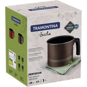 Características: Marca: Tramontina Linha: Sicília Cor: Avelã Material: Alumínio Material da Alça/Pegador: Baquelite Antitérmico Antiaderente: Sim Espessura: 1,8mm Capacidade: 1,9L Diâmetro: 14cm Fogões Compatíveis: A gás, elétrico e vitrocerâmico Compatível com Lava Louças: Sim Possui Tampa: Não