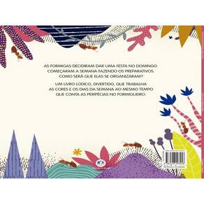 As formigas decidiram dar uma festa no domingo. Começaram a semana fazendo os preparativos. Como será que elas se organizaram? Um livro lúdico, divertido, que trabalha as cores e os dias da semana ao mesmo tempo que conta as peripécias no formigueiro.