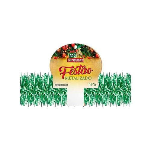01 un - festão verde metalizado 6cmx2m decoração natal