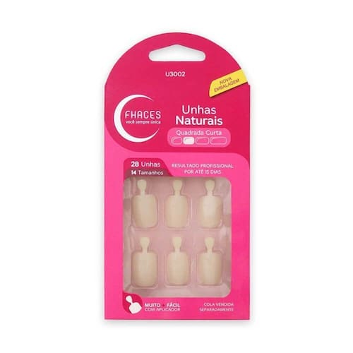 Fhaces Unhas Postiças Natural Quadrada Curta C/28