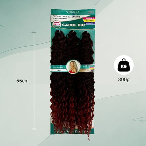 Fibra Carol Bio Orgânica 55 cm – 300gNaturalidade, conforto e versatilidade no método Crochet BraidA Fibra Carol Bio Orgânica é perfeita para quem busca um visual sofisticado com aparência natural. Desenvolvida especialmente para o método Crochet Braid, oferece leveza, volume equilibrado e excelente acabamento.Com 55 cm de comprimento e 300 gramas, proporciona um caimento bonito, ideal para quem valoriza estilo com praticidade. Sua textura se aproxima dos fios naturais, garantindo um visual mais autêntico.Aceita temperatura moderada (até 180?°C) com o uso de protetor térmico, além de permitir corte e modelagem, o que facilita a personalização do penteado.Principais características:Método: Crochet BraidComprimento: 55 cmPeso total: 300 gramasTextura com aparência naturalLeve, confortável e ideal para uso diárioPode ser cortada e modeladaSuporta ferramentas térmicas até 180?°C (com proteção térmica)Cuidados recomendados:Lavar com água fria e shampoo neutroHidratar com creme sem enxágue leveSecar naturalmenteEvitar escovas e pentes finosA Fibra Carol Bio Orgânica é a escolha certa para quem deseja um look moderno, com qualidade e liberdade para criar.