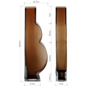 Ficarella Vaso 35x5x11cm Vidro âmbar O grande destaque desse vaso de vidro é o seu belíssimo acabamento com detalhes em alto relevo e as suas formas geométricas que podem fazer toda a diferença na decoração do ambiente. Ele pode ser utilizado para trazer um toque da para dentro dos espaços ou, simplesmente como um objeto de enfeite para móveis.
