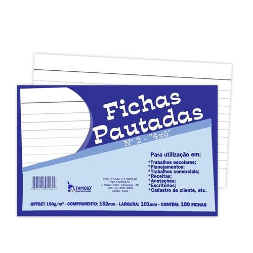 A Ficha para Resumos Tamoio, é produzida com os melhores materiais para auxiliar em suas tarefas do dia a dia. Ideal para utilização em trabalhos escolares, planejamentos, trabalhos comerciais, receitas, anotações, escritórios, cadastros de cliente, entre outros.