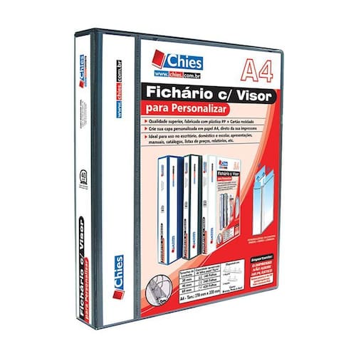O fichário Chies possui alta resistência e durabilidade. Perfeito para organizar seu escritorio ou até mesmo utilizar como fichário escolar, tabela de preços, catálogo, arquivamento e outros.