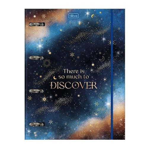 Caderno Argolado Cartonado Universitário com Elástico Magic 80 Folhas possui formato compacto, é leve e bastante funcional. Vem com folha de adesivos, folhas pautadas e bolsa plástica para guardar trabalhos e anotações. O fechamento em elástico garante segurança e praticidade.