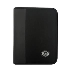 Fichário Universitário Acp 4 Argolas Trade Mark 942 Preto O Fichário Universitário Académie é um produto prático que possui fechamento em zíper, com folhas 96 folhas pautadas, estojo e 6 divisórias transparentes. - Marca: ACP- Referência: 942- Cor: Preto- 4 Argolas- 1 estojo- 6 divisórias transparentes- 96 folhas pautadas 20x27,5cm - Tamanho do fichário: 270mmx345mmx45mm- Tamanho do estojo: 235x120x55mm- Composição do fichário: Pvc, Nylon, Poliéster, Papelão, PP, Metal, Zíper e Cursor- Composição do estojo: Pvc, Ziper e Cursor