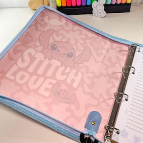 Fichário lindo com zíper com o tema do queridinho Stitch, já vem pronto para usar. Super versátil pois permite remover e acrescentar as folhas sem causar dano a elas ou a estrutura do caderno argolado. É uma excelente ferramenta para organização de conteúdos e informações.