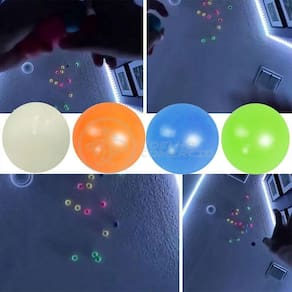 A bolinha é feita de material TPR, um material elástico macio, é muito seguro e durável. A bola luminosa gruda na parede com boa elasticidade, ela é forte e resistênte, durável e reutilizável, basta lavar e a viscosidade pode ser restaurada após a secagem.