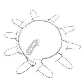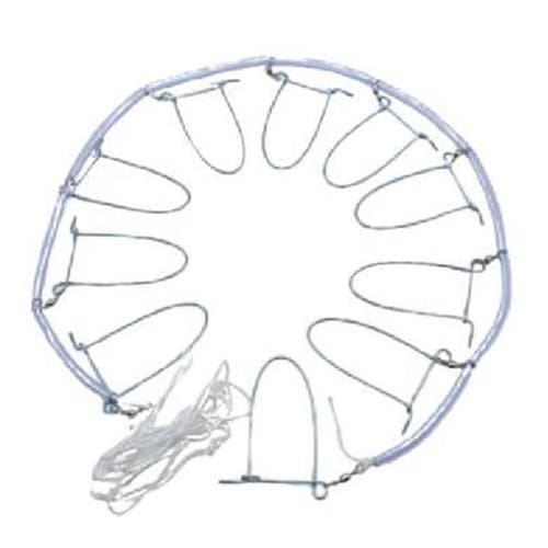 - possui 3 metros de comprimento, sendo 2,10 metros de corda e 90 centimetros com 10 presilhas em arame galvanizado para prender os peixes.
