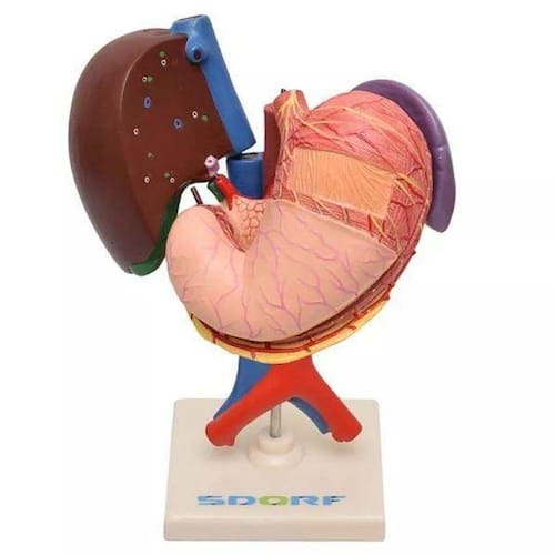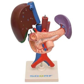 Modelo de fígado, pâncreas, baço e duodeno, confeccionado em PVC e resina plástica emborrachada; Com o modelo SD-5050 é um modelo excelente para a visualização das seguintes estruturas dentre outras: Fígado lobo esquerdo, lobo direito, lobo caudado, lobo quadrado, artéria hepática, veia cava inferior, ligamento falciforme, veia porta, vesícula biliar ; Pâncreas cabeça, corpo, cauda, ducto pancreático ; Baço; Duodeno parte superior, flexura superior, parte descendente ; - Montado sob base plástica; Acompanha: 01 Base plástica; 01 Haste; 01 Manual em português, 01 Termo de garantia. embalagem: Caixa de papelão. informação adicional Peso 0.770 kg Dimensões 19 x 19 x 17 cm Ean: 6997896550501