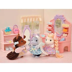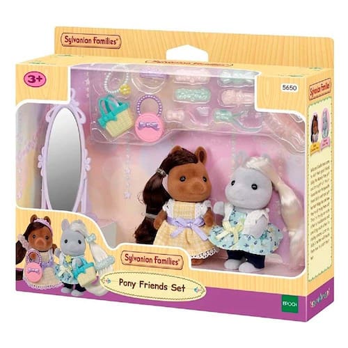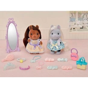 Figura com Acessório - Sylvanian Families - Amigos Pôneis - Epoch Magia: Essas duas são as garotas mais fashion de Sylvania! Bella e Giselle são melhores amigas e adoram pentear o cabelo uma da outra. Suas longas e sedosas crinas podem ser penteadas, trançadas ou decoradas com grampos de cabelo e acessórios, criando muitos novos penteados e looks modernos que você pode admirar no elegante espelho independente. Conjunto contendo duas figuras de pônei de cabelos sedosos, um elegante espelho independente, acessórios para o cabelo e itens de moda. Estilize o cabelo das meninas Pony e combine a bolsa com acessórios para criar roupas da cabeça aos pés. A menina pônei castanha Bella está usando um vestido, enquanto a garota pônei prata Giselle usa calças e um top. Da uma olhadinha nesses diferenciais: - Playset muito aconchegante e divertido - Clássicos, divertidos e eficientes meios de brincar - As crianças podem desenvolver seu nível de raciocínio e coordenação motora - Acompanha a Bella e a Giselle, as garotinhas pôneis mais fashion - Uma parte essencial para sua casinha de brinquedo - Acompanha somente 02 personagens INFORMAÇÕES: • Produto: Figura Infantil Conjunto Amigas Pôneis • Marca: Epoch Magia • Coleção: Sylvanian Families • Tipo: Figura com Acessório • Conteúdo: 2 Pôneis, 1 Espelho, 1 Escova de Cabelo, 1 Pente, 2 Bolsas, 1 Tiara, 1 Colar, 4 Fivelas de Cabelo, e 2 Prendedores de Cabelo • Recomendação: para crianças a partir de 03 anos de idade ESPECIFICAÇÕES: • Referência: 5650 • Código de Barras: 5054131056509 • Embalagem (C x A x L): 20 x 17 x 05 cm • Embalagem (Peso): 0,145 kg • Material / Composição: Plástico Injetado e Tecido • Registro: 004975/2019 • Certificado: Órgãos Autorizados - OCP´S (Organismos de Certificação de Produtos) BENEFÍCIOS DE BRINCAR: • Eleva a autoestima • Exercita a memória • Estimula o raciocínio • Exercita o imaginário • Desenvolve a criatividade • Desenvolve percepção visual • Desperta a atenção e curiosidade • Desenvolvimento neuropsicológico • Estimula habilidades motoras básicas • Incentiva a comunicação e linguagem • Desenvolve aspectos emocionais e afetivo • Estimula o reconhecimento de formas e cores AVISO: • As imagens são meramente ilustrativas • Os pesos, tamanhos e medidas são aproximados • As cores e estampas dos produtos podem ter variações • As informações são de responsabilidade do fabricante ou fornecedor