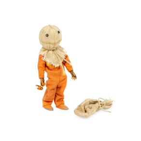 - Em escala com os outros bonecos de 20 cm da NECA, Sam tem aproximadamente 12,7 cm de altura e está vestido com seu pijama com pés com um saco de estopa removível que revela sua cabeça desmascarada com articulação da mandíbula
