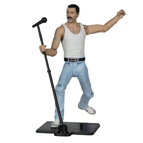 McFarlane Toys - Boneco Music Maniacs Rock Freddie Mercury 15 cm - Boneco incrivelmente detalhado em escala de 15 cm com semelhança de Freddie Mercury - Projetado com até 12 pontos de articulação para posar e brincar - Os acessórios Freddie Mercury incluem suporte de microfone e microfone - Inclui cartão de arte com certificado de autenticidade numerado - Apresentado em embalagem com tema Music Maniacs - Colecione todos os bonecos de rock McFarlane Toys Music Maniacs