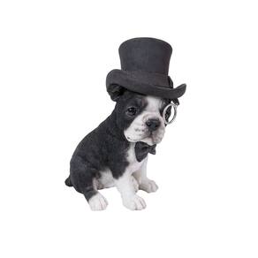 Hi-Line Gift Ltd. Boston Terrier con sombrero de copa - Espectáculo y moño, en blanco y negro. - Hecho de poliuretano - Ideal para decoración del hogar y jardín - Adecuado para uso en interiores y exteriores