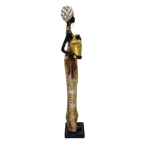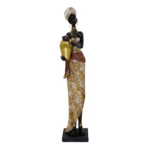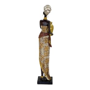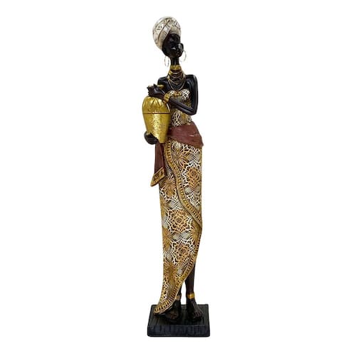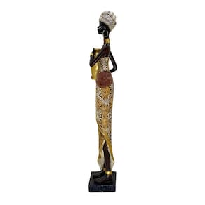 Figura Decorativa Estatueta Africana 39 x 7 x 8 cm, uma peça que transforma qualquer ambiente com sua elegância e significado cultural. Ideal para quem busca uma decoração sofisticada e cheia de personalidade, esta estatueta traz o charme das tradições africanas, destacando detalhes ricos em texturas e cores douradas que valorizam cada traço.