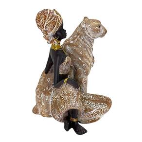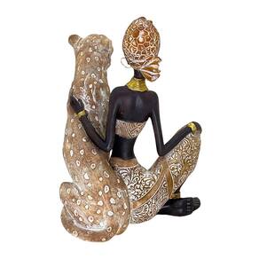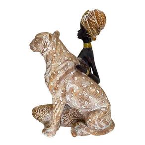 Figura Decorativa Estatueta Africana Com Leopardo 25 X 18 X 17 Cm - 83-954 Figura Decorativa Estatueta Africana Com Leopardo 25 x 18 x 17 Cm