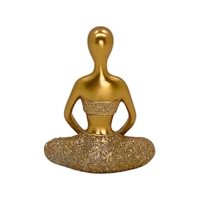 Adicione um toque de serenidade e elegância ao seu espaço com esta deslumbrante estatueta decorativa em pose de yoga. Confeccionada em resina de alta qualidade, a peça apresenta um acabamento dourado luxuoso que reflete luz e adiciona brilho ao ambiente. Com dimensões precisas de 14 cm de altura, 11 cm de largura e 5 cm de profundidade, esta escultura compacta é perfeita para decorar diversos ambientes, desde salas de meditação até escritórios ou estantes. A figura captura graciosamente a essência do yoga, retratando uma pose clássica com detalhes ornamentados na base e no vestuário. Pesando aproximadamente 120g, esta peça decorativa combina leveza física com presença visual marcante. O design sofisticado apresenta uma mistura harmoniosa de elementos clássicos e contemporâneos, tornando-a versátil para complementar diferentes estilos de decoração. A estatueta serve como um lembrete sereno da importância do equilíbrio e da paz interior, além de ser um elemento decorativo que adiciona personalidade ao ambiente.