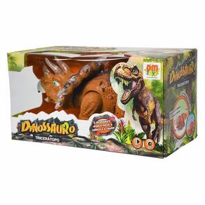 FIGURA ELETRÔNICA - DINOSSAURO - TRICERÁTOPO - LARANJA - DM TOYS: As crianças são estimuladas a viver uma brincadeira pré-histórica de dinossauros com essa figura eletrônica com movimentos Tricerátopo. Essa incrível fera anda, mexe a cabeça e a cauda. O Tricerátopo possui luz e emite som para deixar a brincadeira mais divertida! INFORMAÇÕES: - Produto: Dinossauro Tricerátopo - Marca: DM Toys - Tipo: Figura com Movimentos - Medidas aproximadas: 35 cm - Conteúdo: 01 Tricerátopo a pilha - Características: Com luz e som Anda, mexe a cauda e balança a cabeça - Recomendação: para crianças a partir de 3 anos de idade ESPECIFICAÇÕES: - Referência: DMT4724 - Bateria: Utiliza 03 pilhas "AA" não incluídas - Material: Composição: Plásticos PP e PS - Certificado: CE-BRI/OCP0019 N020/16 BR-020/16 NBR NM 300/2002 ALGUNS BENEFÍCIOS DE BRINCAR: 1 - Eleva a autoestima 2 - Estimula o raciocínio 3 - Exercita o imaginário 4 - Desenvolve a criatividade 5 - Promove a socialização e interação 6 - Desenvolvimento neuropsicológico 7 - Estimula habilidades motoras básicas 8 - Incentiva a comunicação e linguagem 9 - Desenvolve aspectos emocionais e afetivos AVISO: - Foto: Imagens meramente ilustrativas. - Imagem: cores e estampas dos produtos podem ter variações. - Observação: Informações são de responsabilidade do fabricante ou fornecedor. ATENÇÃO: Comprar Figura Eletrônica - Dinossauro - Tricerátopo - Laranja - DM Toys ficou fácil. Aproveite nossas condições de pagamento. Oferta válida por tempo limitado. Entrega para todo o Brasil!