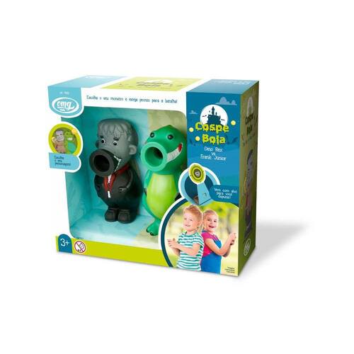 Figuras Lançadoras - Cospe Bola - Dino Rex vs Frank Júnior - OMG Kids: A criançada vai adorar essas novas figuras cuspidoras de bolas! Coloque a bolinha no bocal, mire para o alvo e aperte com força para acertar seu alvo em cheio. É uma grande disputa... Dino Rex contra Frank Júnior! Quem vai ganhar essa disputa amistosa? Ou melhor, qual dos dois vai ficar bolado? Se divirta com esse brinquedo divertido que aproxima as crianças! • Detalhes - Com 2 figuras, Dino Rex e Frank Júnior - Vem com alvo para você disputar - Não precisa de pilhas pra brincadeira acontecer - Coloridos e divertidos, perfeito para as crianças se divertir INFORMAÇÕES: • Produto: Cospe Bola Dino Rex vs Frank Júnior • Marca: OMG Kids • Coleção: Cospe Bala • Categoria: Bonecos e Cia • Tipo: Bonecos de apertar • Conteúdo: 02 Bonecos, 04 bolinhas e 02 alvos • Recomendação: para crianças a partir de 03 anos de idade ESPECIFICAÇÕES: • Referência: 4650 • Código de Barras: 7896965246507 • Embalagem (C x A x L): 27 x 24 x 10 cm • Embalagem (Peso): 0.415 kg • Material / Composição: Vinil e EVA • Registro: CE-BRI/IQB 006272 NM 300/2002 • Certificado: Órgãos Autorizados - OCP´S (Organismos de Certificação de Produtos) BENEFÍCIOS DE BRINCAR: - Eleva a autoestima - Exercita a memória - Estimula o raciocínio - Exercita o imaginário - Desenvolve a criatividade - Desenvolve percepção visual - Desperta a atenção e curiosidade - Desenvolvimento neuropsicológico - Estimula habilidades motoras básicas - Incentiva a comunicação e linguagem - Desenvolve aspectos emocionais e afetivo - Estimula o reconhecimento de formas e cores AVISO: - As imagens são meramente ilustrativas - Os tamanhos e medidas são aproximados - As cores e estampas dos produtos podem ter variações - As informações são de responsabilidade do fabricante ou fornecedor