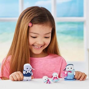 Figuras - Sylvanian Families - Família das Focas - Epoch Magia: Sylvanian Families são adoráveis personagens animais distintos com charmosas e bonitas casas, móveis e acessórios. Eles vivem, trabalham e brincam na idílica e maravilhosa terra de Sylvania. Detalhes: • A família Foca tem traços fofos e redondos • Eles têm marcas semelhantes a sobrancelhas, orelhas com covinhas e bigodes ao redor da boca • Este kit contém o pai, a mãe e os bebês, além de acessórios de piscina • As roupas podem ser tiradas para mudar o look dos bonecos • Os bebês têm uma textura macia e fofinha • Eles usam roupas lindas em estilo marinheiro • Cada acessório pode ser utilizado com os bonecos Informações: • Produto: Figuras Família das Focas Sylvanian Families • Marca: Epoch Magia • Coleção: Sylvanian Families • Tipo: Figuras de Personagens • Categoria: Figuras de Animais e Pets • Conteúdo: - 04 figuras (Pai, Mãe e Bebê Foca, Bebê Foca engatinhando - 03 Acessórios (bolsa, boia de natação e bola de praia) • Recomendação: para crianças a partir de 03 anos de idade Especificações: • Referência: 5759 • Código de Barras: 5054131057599 • Embalagem (C x A x L): 20 x 17 x 5.5 cm • Embalagem (Peso): 0.167 kg • Material / Composição: Plástico Injetado e Tecido • Registro: 004975/2019 • Certificado: Órgãos Autorizados - OCP´S (Organismos de Certificação de Produtos) Aviso: • As imagens são meramente ilustrativas • Os pesos, tamanhos e medidas são aproximados • As cores e estampas dos produtos podem ter variações • As informações são de responsabilidade do fabricante ou fornecedor