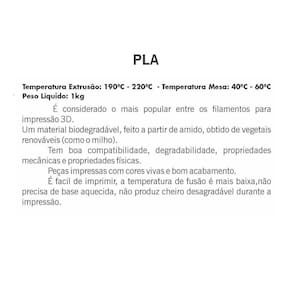 O filamento PLA apresenta alta resistência e excelente ótimo final.