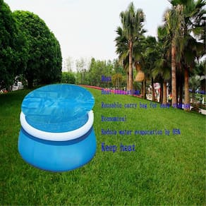 Características em destaque AVISO: Este produto pode conter peças pequenas, que representam um risco de asfixia. Supervisão de um adulto sugerida. 1. Economize tempo: use uma cobertura solar de piscina para reduzir o tempo de limpeza.2. Bom ajudante: Esta cobertura de piscina no solo ajuda a manter sua piscina longe de sujeira, insetos e detritos.3. Multifuncional: também usa a energia l do sol para aquecer a água. Isso permite que você aqueça a água no início da temporada de natação e mantenha a temperatura na noite de inverno.4. Vem com bolhas de amor: pode evitar o desgaste 5. Design de cores sólidas - mantenha sua piscina aquecida enquanto você relaxa Veja menos
