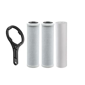 - Três Carcaças 10 polegadas transparente - Suporte Triplo com parafusos - Elemento filtrante Polipropileno 10 5 Micras - Dois Elemento filtrante Carbon Block 10 5 Micras - Conectores cotovelo com encaixe - Mangueira 4 Metros - Conector para torneira - Vazão 60 litros/hora. - Chave para manutenção do sistema Marca: Br Fish Aquarismo Ean: 7893199392000