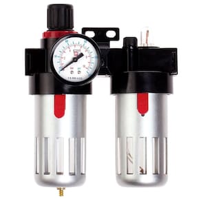 União do regulador de pressão com o filtro de ar em um corpo único, com o objetivo de economizar espaço nas montagens dos conjuntos. É utilizado para reduzir a pressão do ar comprimido ao nível ideal, mantendo-o estável durante o processo. Através do botão com trava de segurança contra desregulagens, é possível regular a pressão do ar, de forma suave e rápida. Retira do ar partículas sólidas e partículas de água condensada na tubulação. A fixação do copo por meio de roscas permite desmontagem fácil e rápida na limpeza e manutenção. Elemento filtrante produzido em POLIPROPILENO POROSO Porosidade do elemento = 20 microns , pode ser fácilmente retirado, sem auxílio de ferramentas. O número de limpezas possíveis é praticamente infinito. Sistema automático de drenagem do condensado drena sempre que a pressão desce a 15 libras . Lubrificador.